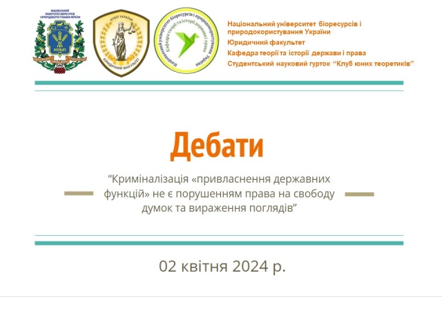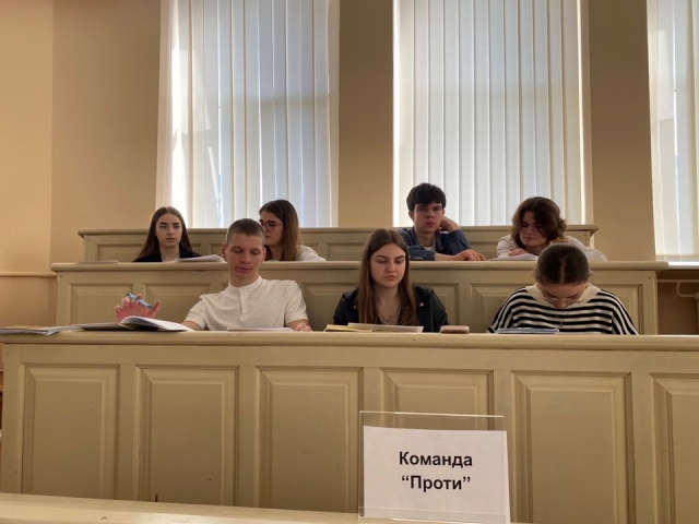 А ось магістри утворили склад «Журі» в кількості 5 осіб (Дар’я Будімірова, Софія Велика, Владислав Лук’яненко, Слава Пекарський, Інна Сивко). Їхня роль дозволила їм на практиці відчути процес «оцінювання» правових позицій дебатерів, яке включало оцінювання аргументів, оцінювання заперечень і виставлення балів за чітко встановленими критеріями щодо ролі, розуміння теми, аргументації та презентації результатів.