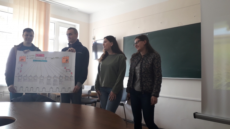 Студенти працювали командами, що наближає підготовку цього завдання до реальних умов роботи. Були представлені проекти виробничого циклу по вирощуванню різних сільськогосподарських культур у різних областях України. Використовуючи дані технологічних карт, студенти четвертого курсу навчилися трактувати, аналізувати й використовувати подану в них інформацію. Крім того, викладачі на початку семестру надали приклад проекту промислового підприємства, взятий з наочної книги «Вміння бачити бізнес-процеси: створення цінності та зменшення витрат6666». Це дозволило студентам не копіювати процеси й характеристики агрегатів, а самостійно знаходити дані.