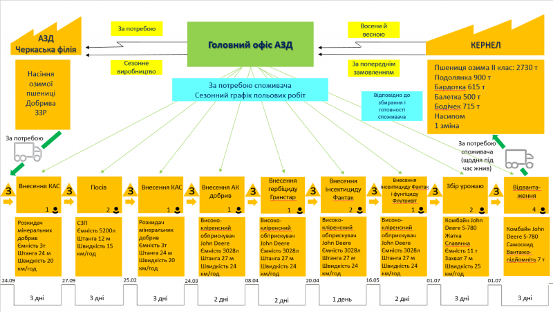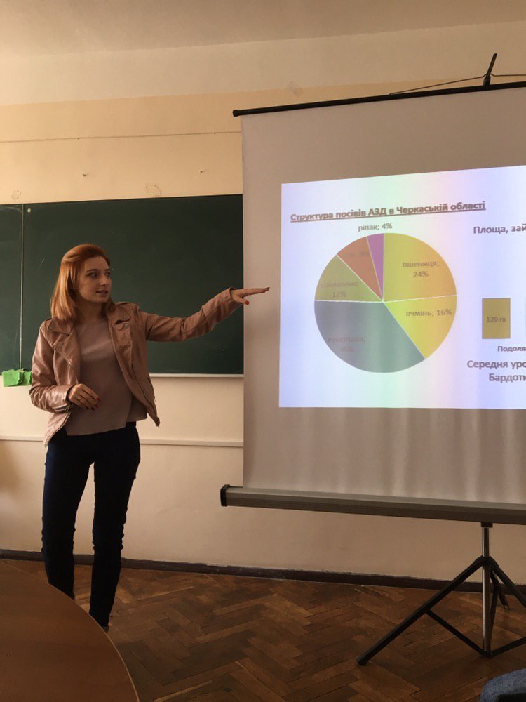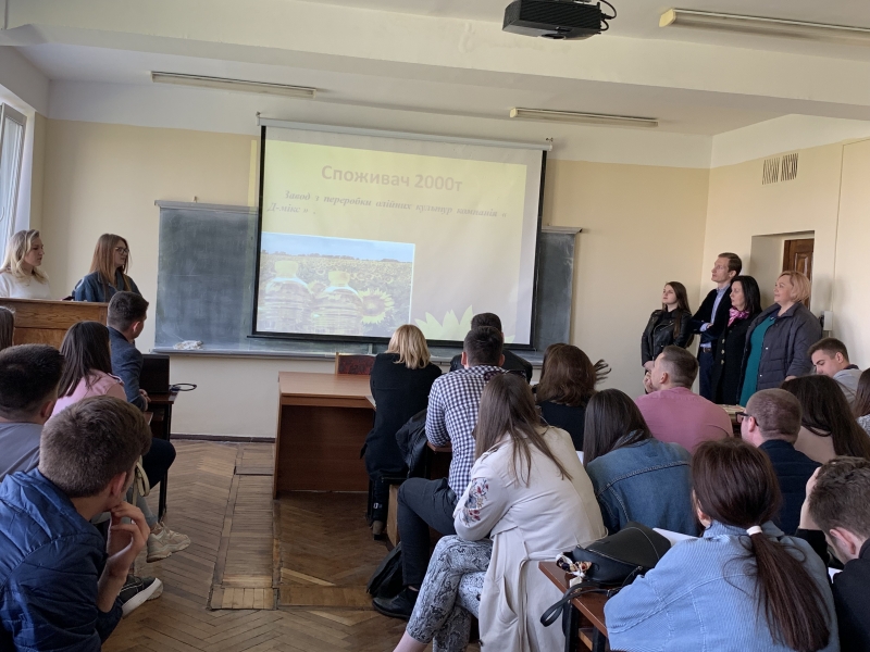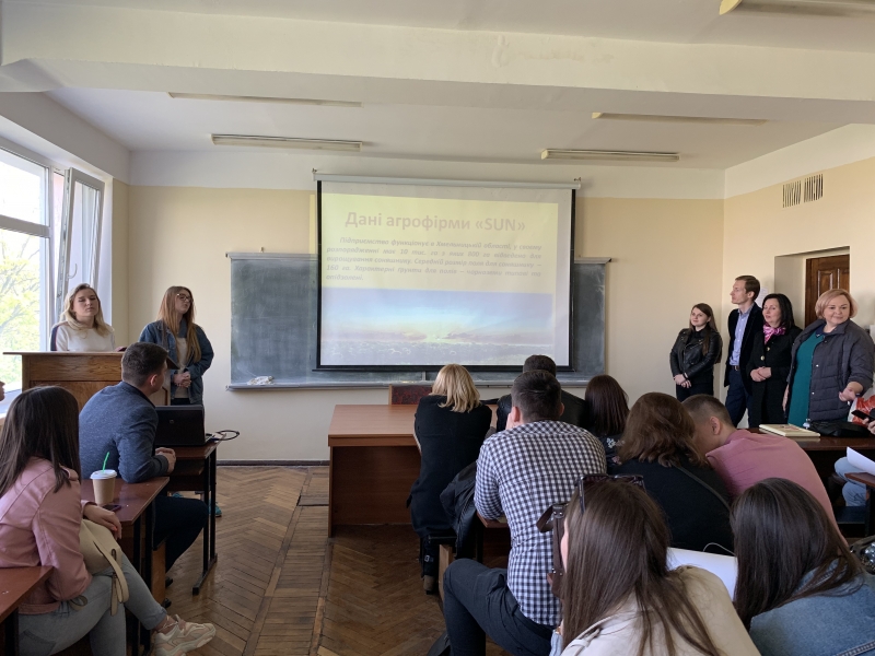 Цікавий підхід використали також під час презентації вирощування соняшнику. Правильні підрахунки основних показників ґрунтувалися на роботі підприємства у 4 зміни й залученні великої кількості техніки. Таким чином, пояснили студенти після виконання розрахунків, можливо досягти значної економії під час насичених польовими роботами періодів.