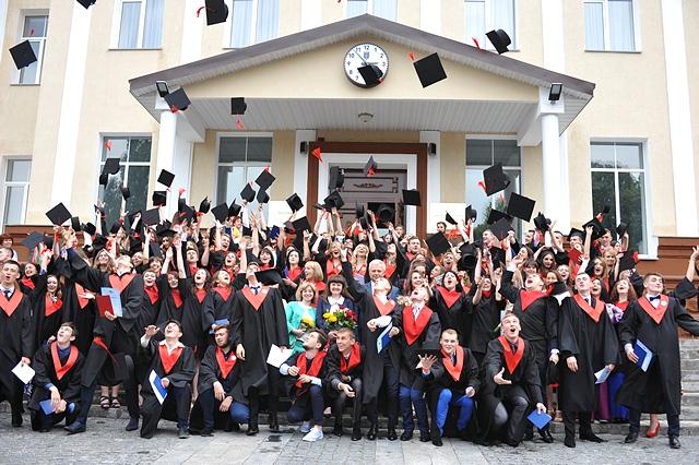 Студенти-маркетологи отримали довгоочікувані дипломи із рук ректора Станіслава Миколайовича Ніколаєнка. Вручення дипломів було завершено груповим фото на фоні відновленого третього корпусу.