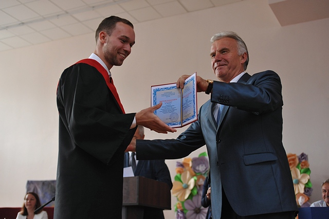 Урочисте вручення дипломів відкрив ректор університету Станіслав Ніколаєнко, побажав випускникам життєвої енергії, наснаги та наголосив про важливість набутих знань та постійного їх удосконалення.