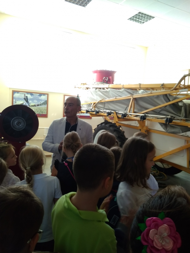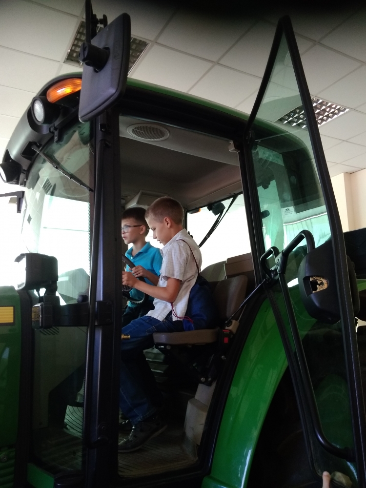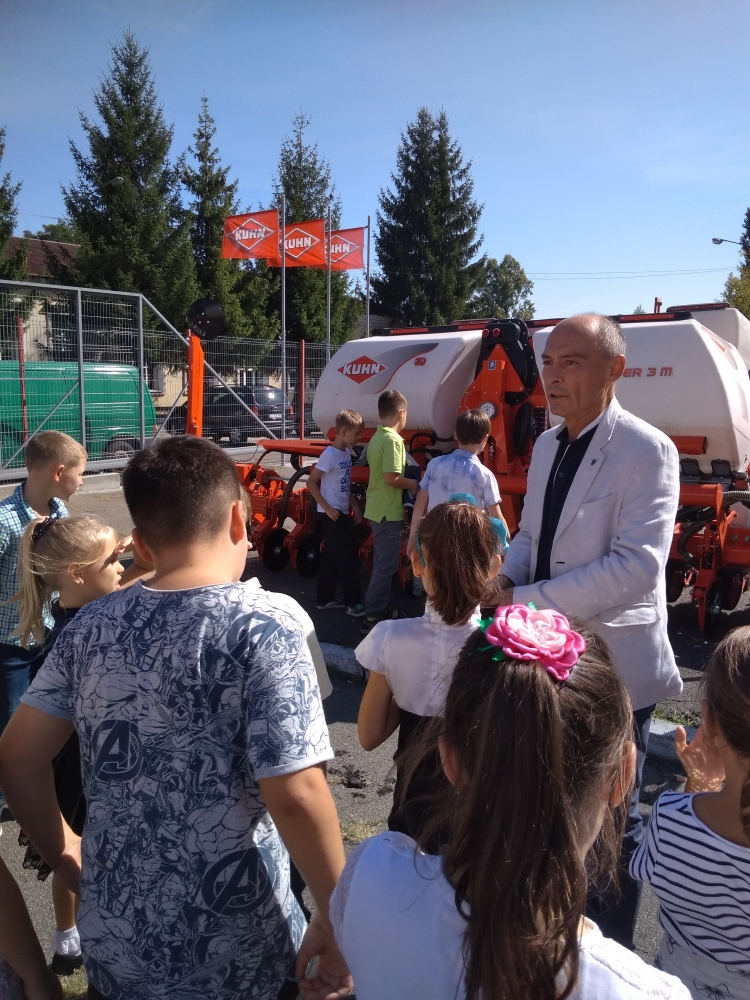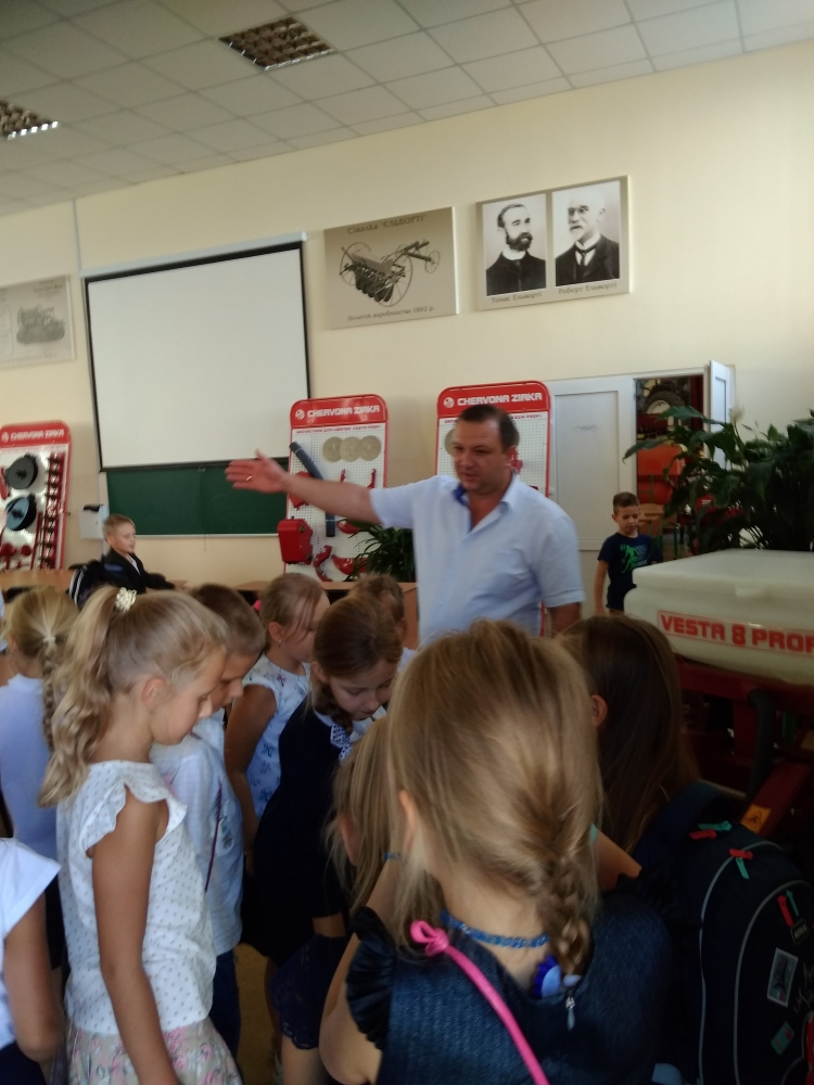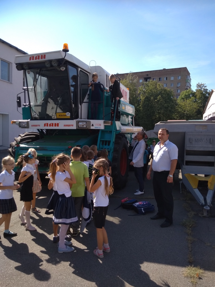 18 вересня механіко-технологічний факультет приймав у себе наймолодших, у поточному навчальному році, гостей – учнів 3 класу гімназії 179 м. Києва. Працівники факультету провели для учнів цікаву екскурсію: ознайомили з навчальними лабораторіями, технікою та обладнанням. Учні, у захваті, оглядали машини, мали можливість відчути себе у ролі операторів сільськогосподарської техніки, спостерігали, як виконується процес висіву насіння кукурудзи пневматичною сівалкою, як працює вентилятор машини для внесення рідких добрив та, як працюють механізми машин для збирання урожаю. Діти задавали багато різних питань, на які з радістю відповідали професор Валерій Войтюк та доценти Ігор Сівак, Віктор Ребенко, Вячеслав Чуба. Це вказує на суттєве розширення учнівського світогляду, кожен хотів торкнутися до деталей обертання та до механізмів передач руху, відчути руками прохолоду металу та тепло двигуна внутрішнього згорання.