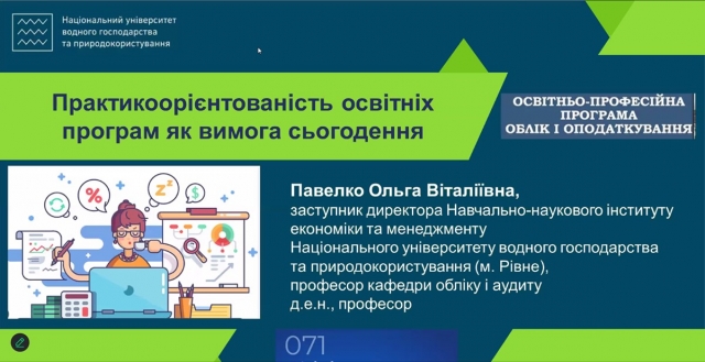 Концептуально важливими в контексті проблематики Круглого столу були виступи відомих вчених Наталії ЛОХАНОВОЇ, д.е.н., професора, завідувачки кафедри бухгалтерського обліку, аналізу та аудиту Одеського національного економічного університету, Наталії КАЩЕНИ, д.е.н., професора, завідувачки кафедри обліку, аудиту та оподаткування Національного біотехнологічного університету (м. Харків), Ольги ПАВЕЛКО, заступника директора з наукової діяльності Навчально-наукового інституту економіки та менеджменту Національного університету водного господарства та природокористування (м. Рівне), професорки кафедри обліку і аудиту, д.е.н., професора, Володимира ОСМЯТЧЕНКА, д.е.н., професора кафедри статистики та економічного аналізу, Національний університет біоресурсів і природокористування України, модератора освітніх проектів SAP, TG.Consulting, які ґрунтовно висвітлили виклики сьогодення під час реалізації практичної складової освітньої програми у відповідності до вимог сучасного бізнес-середовища.