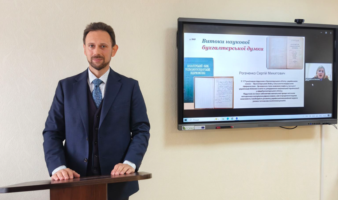 У заключній частині семінару до слова долучилися декан факультету обліку та податкового менеджменту КНЕУ імені В. Гетьмана професор Микола БОНДАР та завідувач кафедри обліку та оподаткування НУБіП України доцент Володимир ЛИТВИНЕНКО, який наголосив на важливості інтеграції історичного досвіду в підготовку сучасних фахівців.