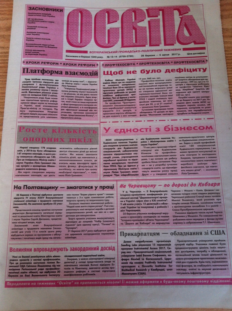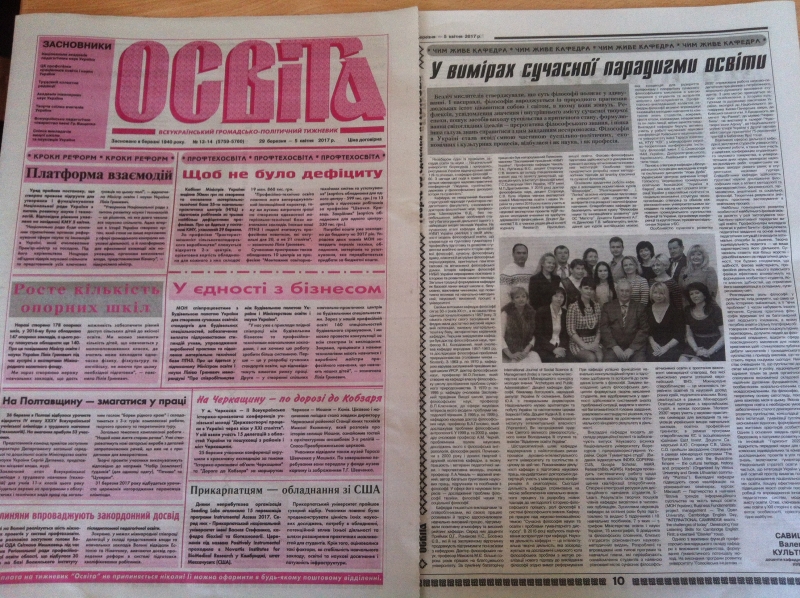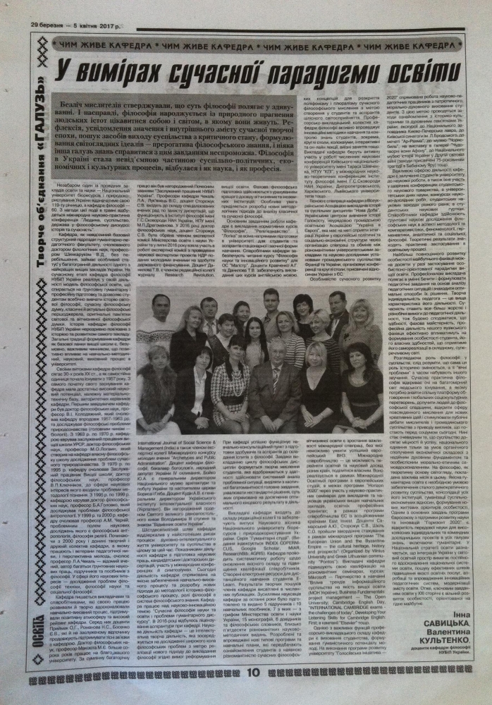 Всеукраїнський громадсько-політичний тижневик "Освіта" у 13-14 номері присвятив свою рубрику "Чим живе кафедра" - кафедрі філософії НУБіП України.