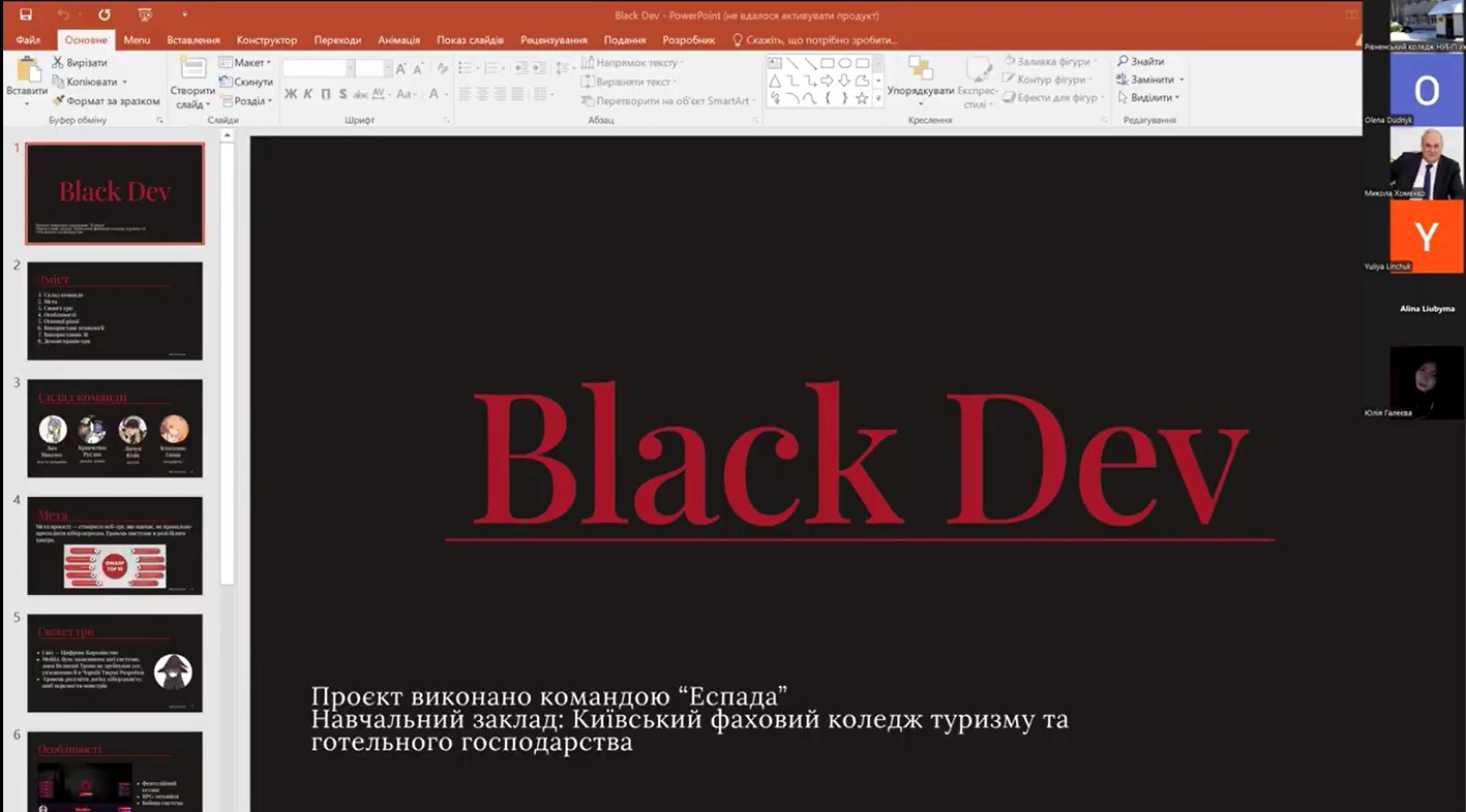 Отже, представлення проєктів! Географія проєкту не дозволила закладам приїхати до Рівного, тому представлення відбувалося в режимі онлайн.