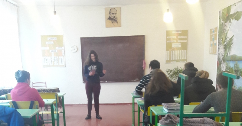 Катерина Динник інформаційно надала допомогу щодо професійного майбутнього випускникам Карапишівської загальноосвітньої школи І-ІІІ ступенів Миронівської районної ради Київської області, яку закінчила минулого року. Поділилася власними переживаннями відносно подальшого професійного визначення та мотивами при обранні майбутнього навчального закладу. Перерахувала позитивні сторони, чому зупинила свій вибір на НУБіП України, який увійшов до десятки найкращих університетів країни. Живий інтерес аудиторії викликало студентське самоврядування та його роль у житті університету, робота творчих студій та гуртків. Також учні отримали запрошення на День відкритих дверей.