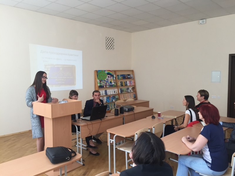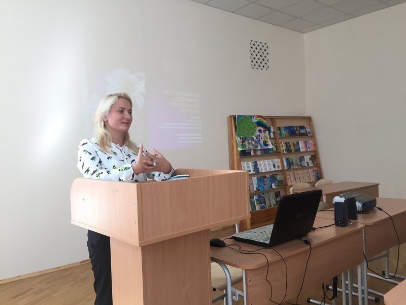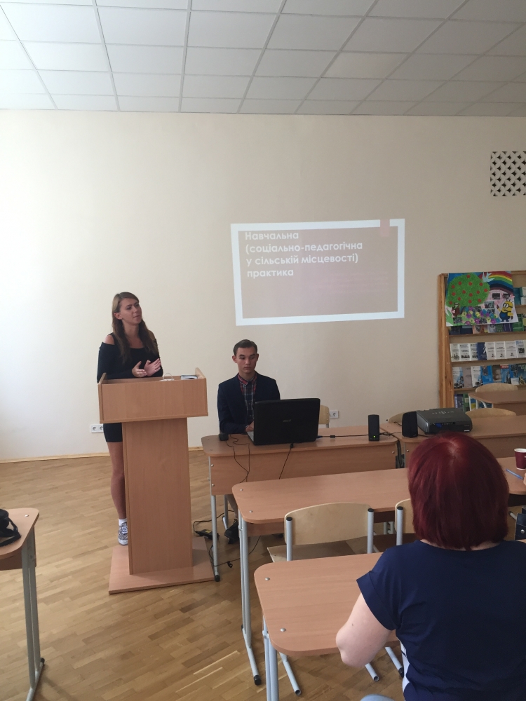 За результатами навчальної (ознайомчої з фаху) практики звітували студенти другого курсу Вікторія Мацола (ДНЗ «Яблучко» Києво-Святошинського району) і Марина Миколаєнко (Київський міський центр соціальних служб для сім’ї, дітей та молоді); соціально-педагогічної навчальної практики у сільській місцевості – студенти третього курсу Юлія Мельник і Вадим Братчиков (ДОЗ СТ «Чайка» і Оболонський районний у м. Києві центр соціальних служб для сім’ї, дітей та молоді).