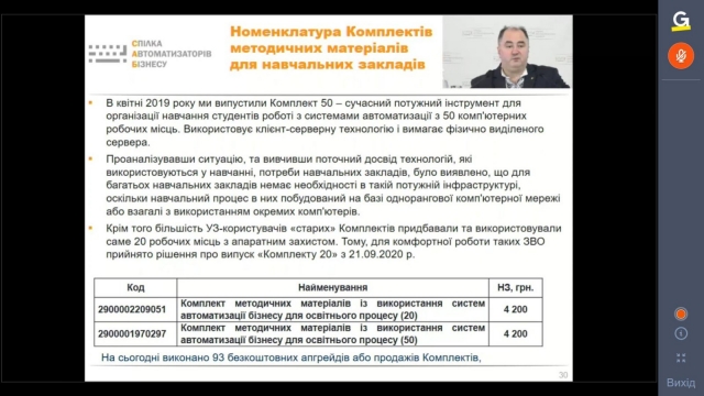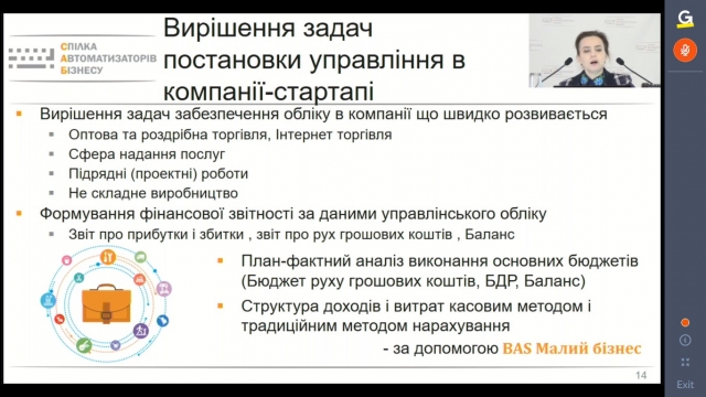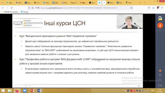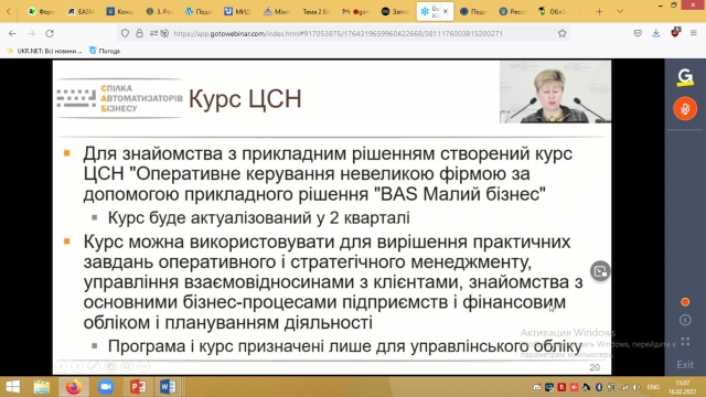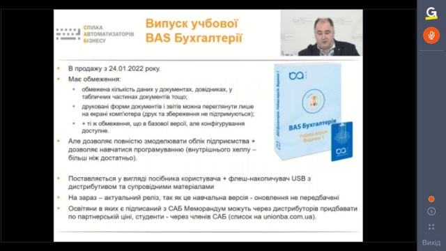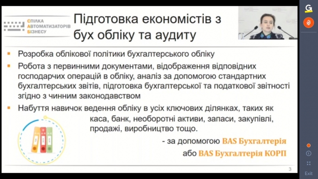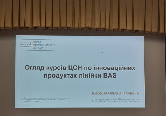 Методист «Всеукраїнської Спілки Автоматизаторів Бізнесу» Шеремет О.А. зробила змістовний огляд курсів ЦСН по інноваційних продуктах лінійки BAS