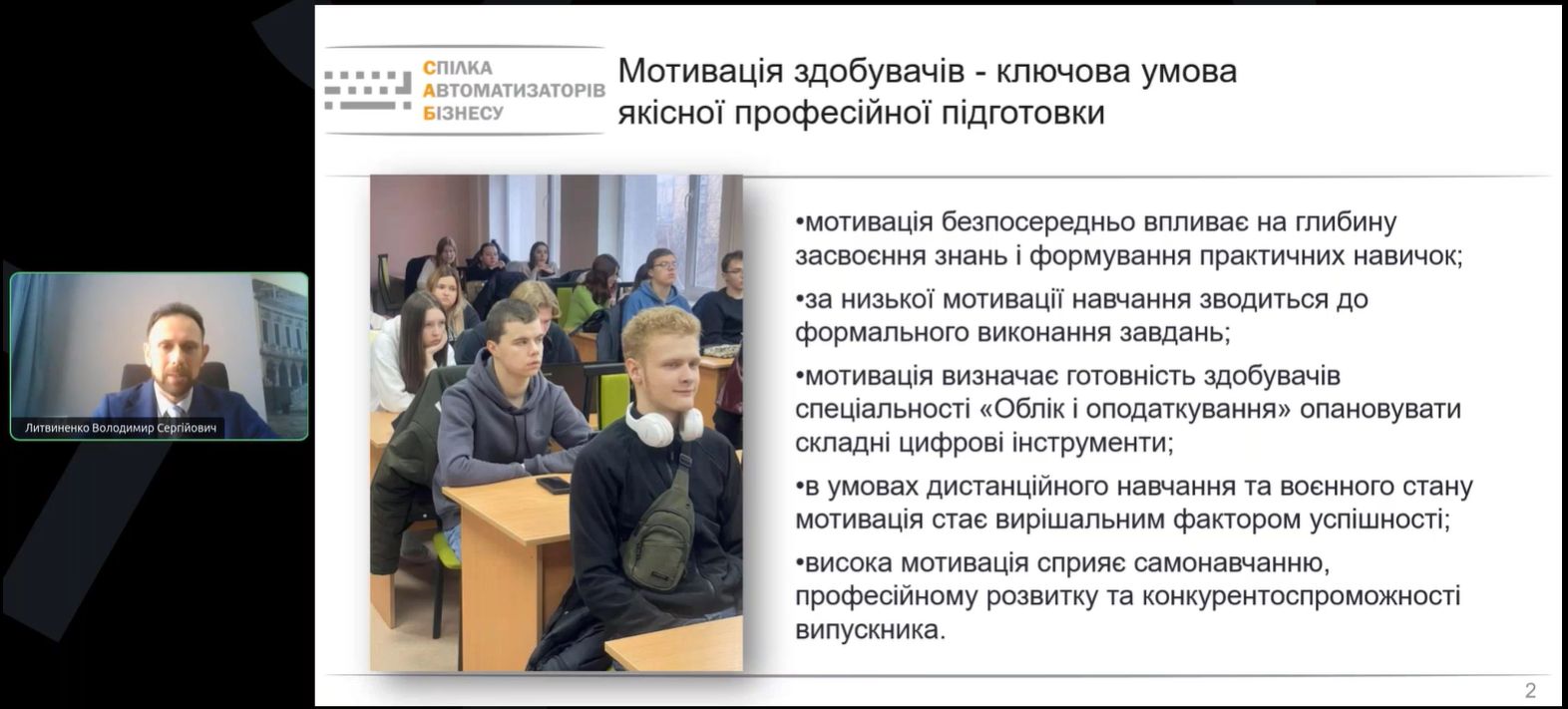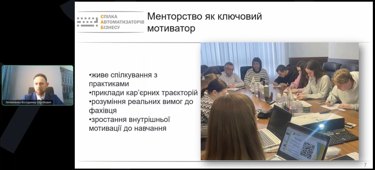 Він зауважив, що безпосередня взаємодія з представниками бізнесу формує у здобувачів чітке розуміння практичної цінності цифрових компетентностей, усвідомлення актуальних вимог ринку праці та підвищує їхню внутрішню мотивацію до поглибленого вивчення відповідного програмного забезпечення.