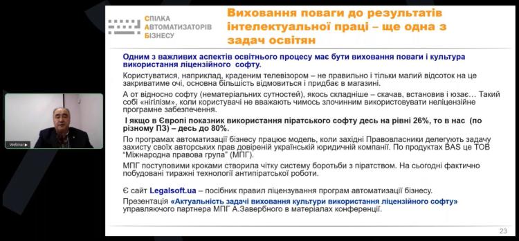 Він зазначив, що Спілка Автоматизаторів Бізнесу об’єднує професіоналів, зацікавлених у розвитку сучасних інформаційних технологій, їх популяризації, кадровому забезпеченню та ефективному використанню в різних галузях економіки. Конференція дає можливість представникам освітніх закладів ознайомитися з новими інформаційними технологіями, обмінятися практичним досвідом їх викладання та застосування в підготовці фахівців, розширити шляхи співпраці з членами Спілки для реалізації спільних освітніх та дослідницьких проєктів