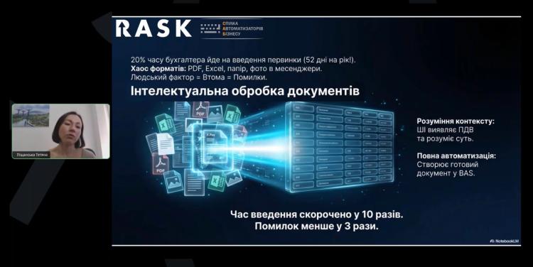 У свою чергу, Тетяна ПІЩАНСЬКА, технічна директорка групи компаній «RASK» окреслила перспективи інтеграції штучного інтелекту у продукти автоматизації бізнесу, що відкриває нові можливості для аналітики даних, автоматизації управлінських рішень та підвищення ефективності бізнес-процесів.