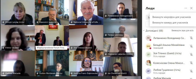 У роботі міжнародного форуму взяли участь представники, серед яких науковці вищих навчальних закладів Польші (Варшавський університет природничих наук–SGGW, Університет ім. Яна Кохановського в Кельцях, Щецинський державний Університет, Білостоцький університет, Опольський університет, Державний університет підприємницької інформатики, Варшавська школа економіки, Університет Казимира Великого), представники фінансово-банківських установ Польші (Департамент фінансів місцевого самоврядування, Міністерство Фінансів, Національна рада регіональних рахункових палат, Варшавський кооперативний банк, філія Volkswagen Bank GmbH в Польші, Центр банківського права та інформації Управління екологічної політики та таксономії BOŚ S.A.), а також представники закладів вищої освіти України (Національний університет біоресурсів і природокористування України (м. Київ), Київський національний університет імені Тараса Шевченка (м. Київ), Інститут економіки та прогнозування НАН України (м. Київ), Сумський національний аграрний університет (м. Суми)).