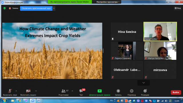 Викладачі кафедри прослухали лекцію Даніеля Мюллера «Наукове введення до вивчення впливу кліматичних змін на сільське господарство в Україні»