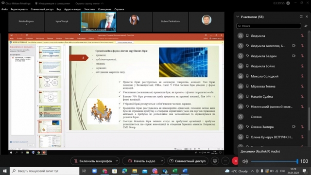 З доповіддю на тему: Особливості регулювання сучасного біржового ринку у відповідності до вимог ЗУ «Про ринки капіталу та організовані товарні ринки» Солодкий Микола Олександрович – професор кафедри організації підприємництва та біржової діяльності.