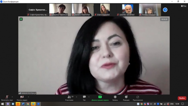 В обговоренні взяла участь кандидат філологічних наук, доцент кафедри журналістики та мовної комунікації Наталія Адамчук, яка докладно зосередила увагу щодо діяльності друкованих засобів масової інформації.