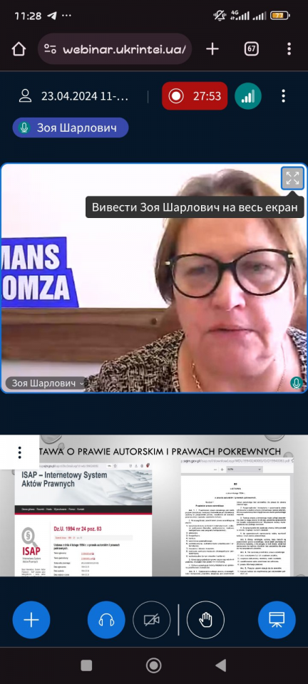Спікерки вебінару кандидат педагогічних наук, ад’юнкт Міжнародної академії прикладних наук в Ломжі (Республіка Польща) Зоя Шарлович і спеціаліст Міжнародної академії прикладних наук в Ломжі (Республіка Польща) Наталія Мошенець змістовно, ґрунтовно і цікаво відповіли на запитання: як користуватися джерелами, щоб не порушувати правил авторського права, як у своїх статтях, наукових працях, на сайтах використовувати джерела із достовірною інформацією, як бути впевненому, що зміст, приведений у праці автора, належить саме йому, а не запозичений без посилання на справжнього автора та інші.