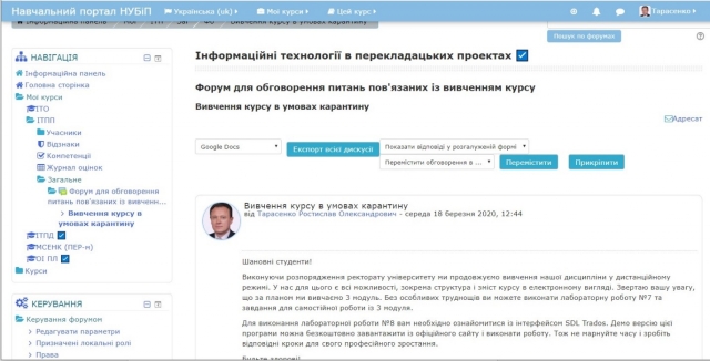 Викладання дисципліни «Інформаційні технології в перекладацьких проектах» в дистанційному режимі