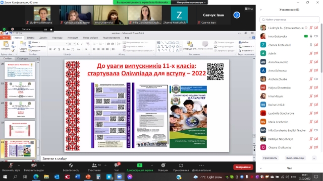 Інна Грабовська запросила до співпраці в аспектах наукової та профорієнтаційної діяльності науково-педагогічні колективи шкіл та гімназій Дарницького району м. Києва, а випускників шкіл – взяти участь в Олімпіаді НУБіП України для вступників 2022 року. Всі учасники отримали електронні сертифікати про участь у науково-методичному онлайн-семінарі.