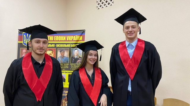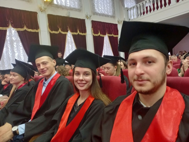 Для отримання дипломів на сцену вийшли випускники спеціальності 061 «Журналістика»: Нікіта Грива, Віта Грущинська, Олександр Сова, яким урочисто були вручені дипломи освітнього ступеня «Магістр».