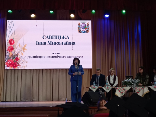 Декан гуманітарно-педагогічного факультету Інна Савицька звернулась до молоді та зазначила, що навчання та підготовка кваліфікованих спеціалістів відбувалася в досить складний і непростий для нашої держави час, проте факультет прийняв важкі виклики сьогодення. Інна Миколаївна побажала випускникам, щоб всі «були здорові, щасливі і радісні. Нехай отриманий диплом стане щасливим квитком у царину кар’єрних успіхів».