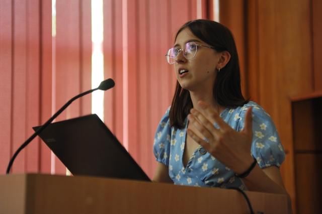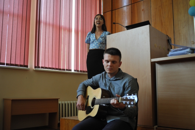 Урочистості пройшли у теплій і дружній атмосфері, з позитивним настроєм та щирими емоціями. Після вітальних слів, голова Сенату студентської організації факультету Анастасія Чернявська, під акомпанемент гітари, виконала для випускників композицію «Небо».