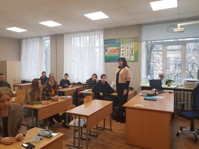Доцент кафедри біохімії і фізіології тварин ім. акад. М. Ф. Гулого Ольга Тупицька зустрілася з учнями 11 класу Спеціалізованої школи №181 ім. І. Кудрі (м. Київ). Вона ознайомила учнів із структурою НУБіП України в цілому та факультету ветеринарної медицини зокрема, умовами і правилами прийому до університету, переліком спеціальностей, за якими здійснюється підготовка фахівців, спортивними та культурними заходами.