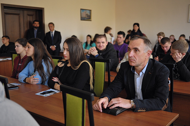 Заступник декана гуманітарно-педагогічного факультету кандидат педагогічних наук, доцент Ярослав Рудик під час спілкування з випускниками технікумів і коледжів ознайомив їх зі структурою нашого факультету, поінформував про ліцензовані спеціальності, за якими здійснюється навчання, а саме: «Міжнародні відносини», «Професійна освіта», «Філологія», «Психологія», «Соціальна робота», «Журналістика», закцентувавши на нових спеціалізаціях «Інформаційно-комунікаційні технології в освіті», «Управління персоналом», «Соціально-психологічна реабілітація».