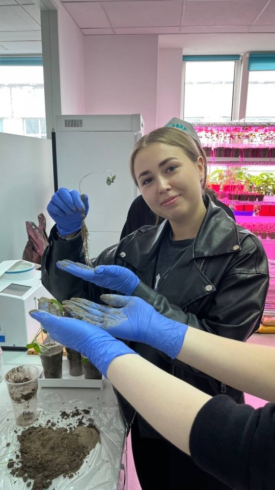 Через кілька днів від початку практики ми активно працювали у відділі «Маркетингу», де досліджували виробництво препаратів із мікоризою вітчизняних організацій-конкурентів і необхідні дані заносили до таблиці. Хочеться відзначити, що нам було дуже приємно за те, що довірили таку роботу. Значний обсяг робіт було приділено польовим і лабораторним дослідженням із насінням сої за різного їх рН середовища. Також аналізували зразки корінців рослин сої на наявність ризобій – гетерогенної групи азотфіксуючих бактерій, які мешкають у грунті, у кореневих вузликах рослин родини бобових, створюючи із останніми симбіоз.