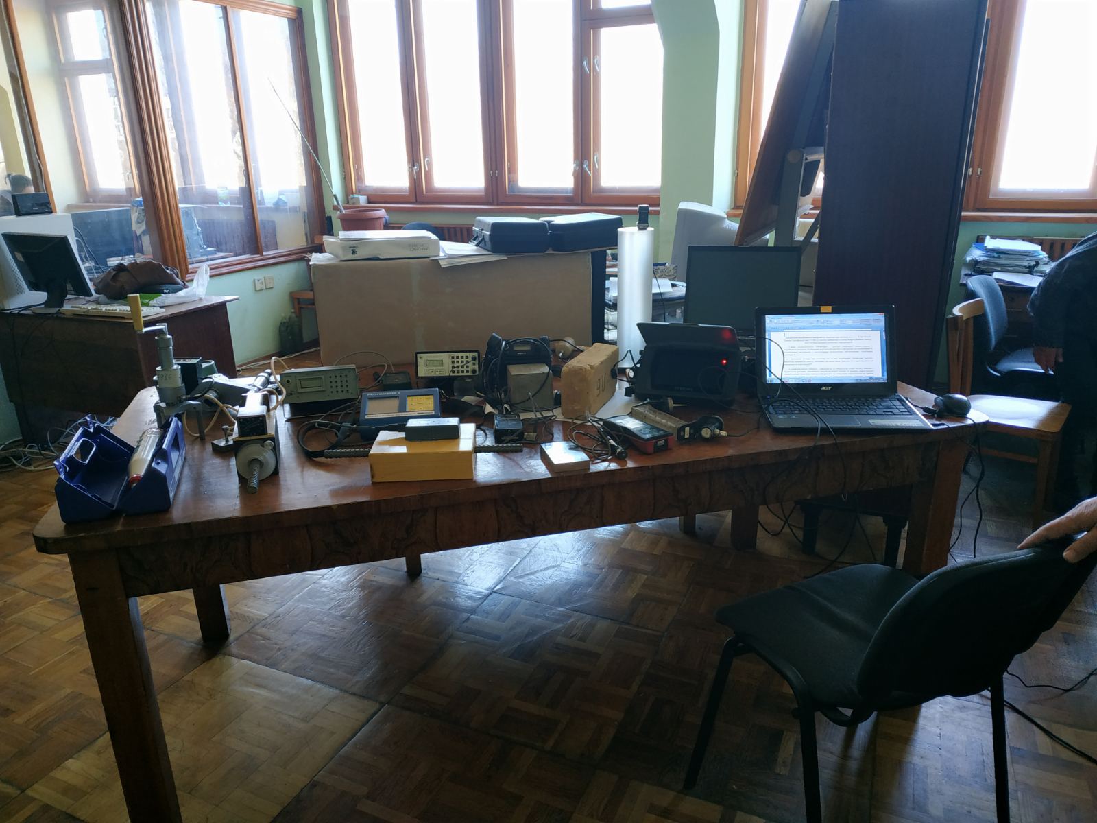 Завідувач лабораторією технічної діагностики і неруйнівного контролю будівельних конструкцій, виробів та матеріалів, к.т.н. Віталій Павлович Глуховський провів ознайомлення та продемонстрував основні принципи роботи із сучасними приладами та обладнанням, які застосовуються у реальних інструментальних обстеженнях будівельного фонду України.