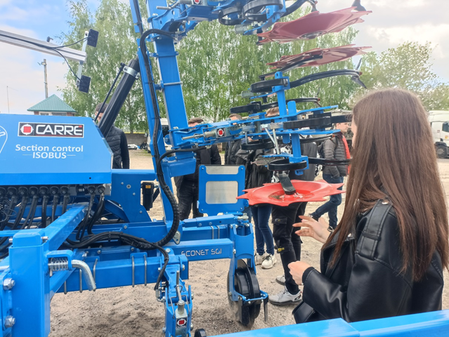 Також, студенти мали можливість ознайомитися із особливостями будови та процесу роботи системи автоматичного водіння культиватора для міжрядного обробітку сільськогосподарських культур компанії Carre, а саме його гідроприводом та електронним зором.