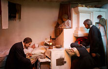 Музей здорово інтригує своїми експозиціями. Одна з експозицій - сцени із столичного медичного літопису. Студенти спостерігали як над операційним столом схилилися Микола Пирогов і Володимир Караваев. Вдивляється в мікроскоп Данило Заболотний. Академік Зразків обмацує живіт дівчини. Фігури - у натуральну величину. Вони настільки правдоподібні, що здається, ніби ворушаться і навіть перешіптуються. Студентам дозволили торкатися цих фігур і відчути на стільки вони наближені до реальних.