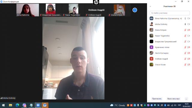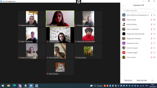 5 квітня відбулася он-лайн зустріч студентів 1 курсу 1 групи з наставником Нагорною Оленою Вікторівною. Зустріч було проведено за допомогою платформи Zoom.