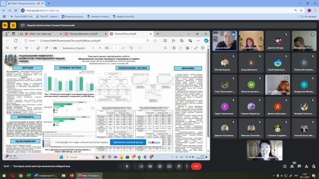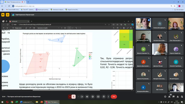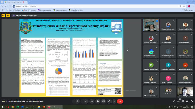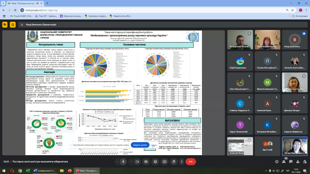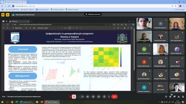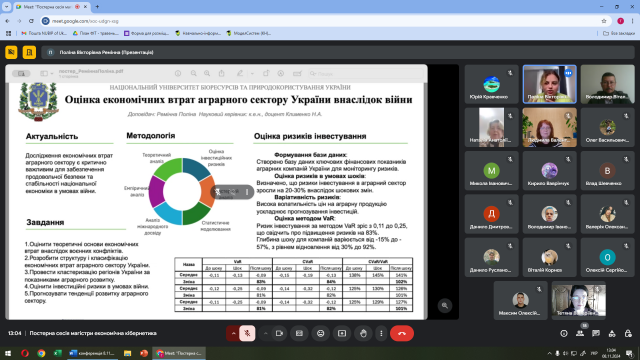 відбулась 08 листопада 2024 року на базі факультету інформаційних технологій НУБіП України На секційному засіданні «Цифрова економіка: інструменти, моделі та методи» магістри представляли результати своїх досліджень у вигляді постерів. З вітальним словом звернувся завідувач кафедри економічної кібернетики, доцент Харченко В.В. Поліна Ремінна доповідала про оцінку економічних втрат аграрного сектору України внаслідок війни