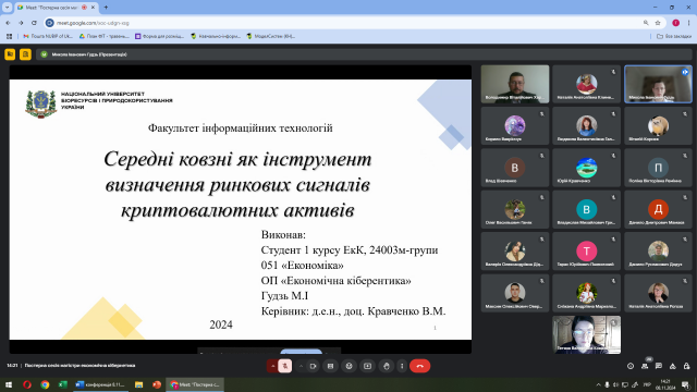 До виступів магістів 2 року навчання долучились магістри першого року та бакалаври Дискусію викликала доповідь Миколи Гудзя про середні ковзні, як інструмент визначення ринкових сигналів криптовалютних активів