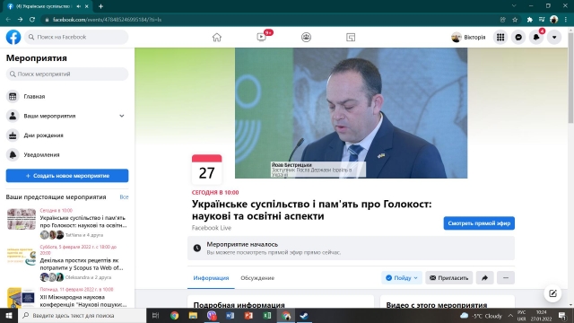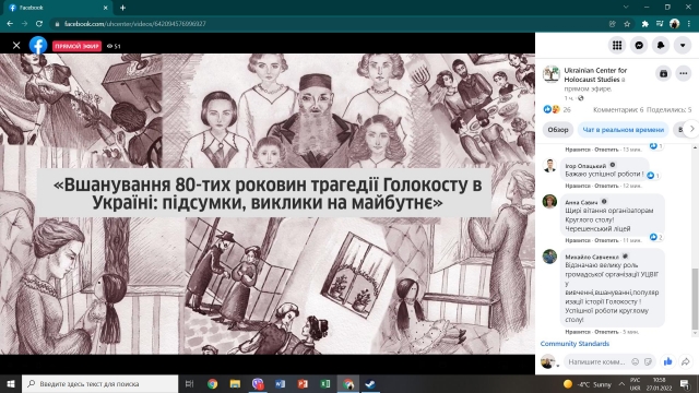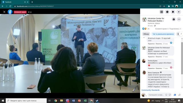 27 січня 2022 року аспіранти кафедри філософії та міжнародної комунікації взяти участь в XV щорічному круглому столу до Міжнародного дня пам’яті жертв Голокосту «Українське суспільство і пам'ять про Голокост: наукові та освітні аспекти».