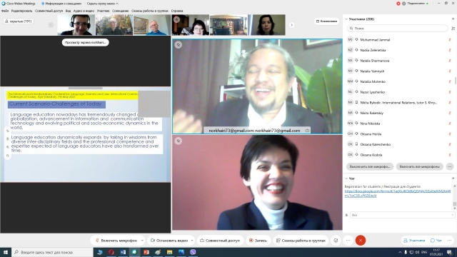 Міжнародна конференція розпочалася з вітального слова декана гуманітарно-педагогічного факультету д-ра Інни Савицької та директора ННЦ міжнародної діяльності Олександра Лабенка. Ключовим доповідачем ІІ Міжнародної міждисциплінарної науково-практичної конференції «Мова, бізнес і право, міжкультурна комунікація: виклики сьогодення» виступив доктор Норкаїрі бін Ахмад, університет Куала Лумпур (Малайзія). Загалом 276 учасників конференції з 12 країн світу – Україна, Малайзія, Греція, Нідерланди, Данія, Індія, Польща, ОАЄ, Австралія, Канада, США, Чехія, продемонстрували свою готовність поширювати й обмінюватися знаннями у мовознавстві загалом і перекладознавстві, методиці викладання іноземних мов, зокрема, а також зорганізуватися в цілях ефективної міжкультурної комунікації у вдосконаленні відповідних умінь і навиків, популяризації серед викладачів і студентів ідеї поєднання знань і навиків у міждисциплінарному полілінгвальному та полікультурному просторі з подальшим практичним застосуванням.