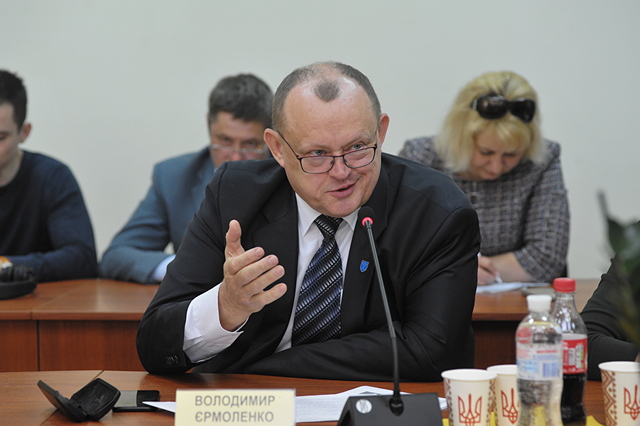 Наступним до слова запросили завідувача кафедри аграрного, земельного та екологічного права ім. В.З. Янчука Володимира Єрмоленка. На початку своєї доповіді він дав кількісну характеристику земельного законодавства. Наразі в Україні прийнято більше 100 земельних законів. Лише за перші три роки роботи чинна Верховна Рада VIII скликання подолала позначку в 10 тисяч зареєстрованих законопроектів (із них 9097 подали народні депутати, ще 806 ініціював уряд і 135 – Президент). Разом з підзаконними актами утворюється гігантський масив законодавства, точний обсяг якого не може визначити жодний аналітик.