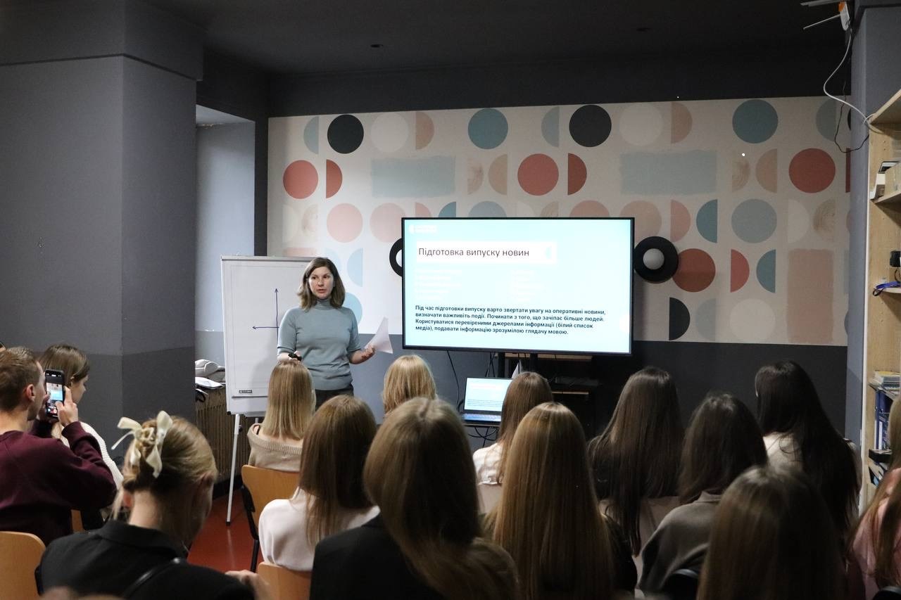 Окрім теоретичної частини, студенти отримали практичний досвід ‒ спробували себе в ролі телевізійної команди: створили концепцію, написали тексти, відзняли й змонтували власний короткий випуск новин.