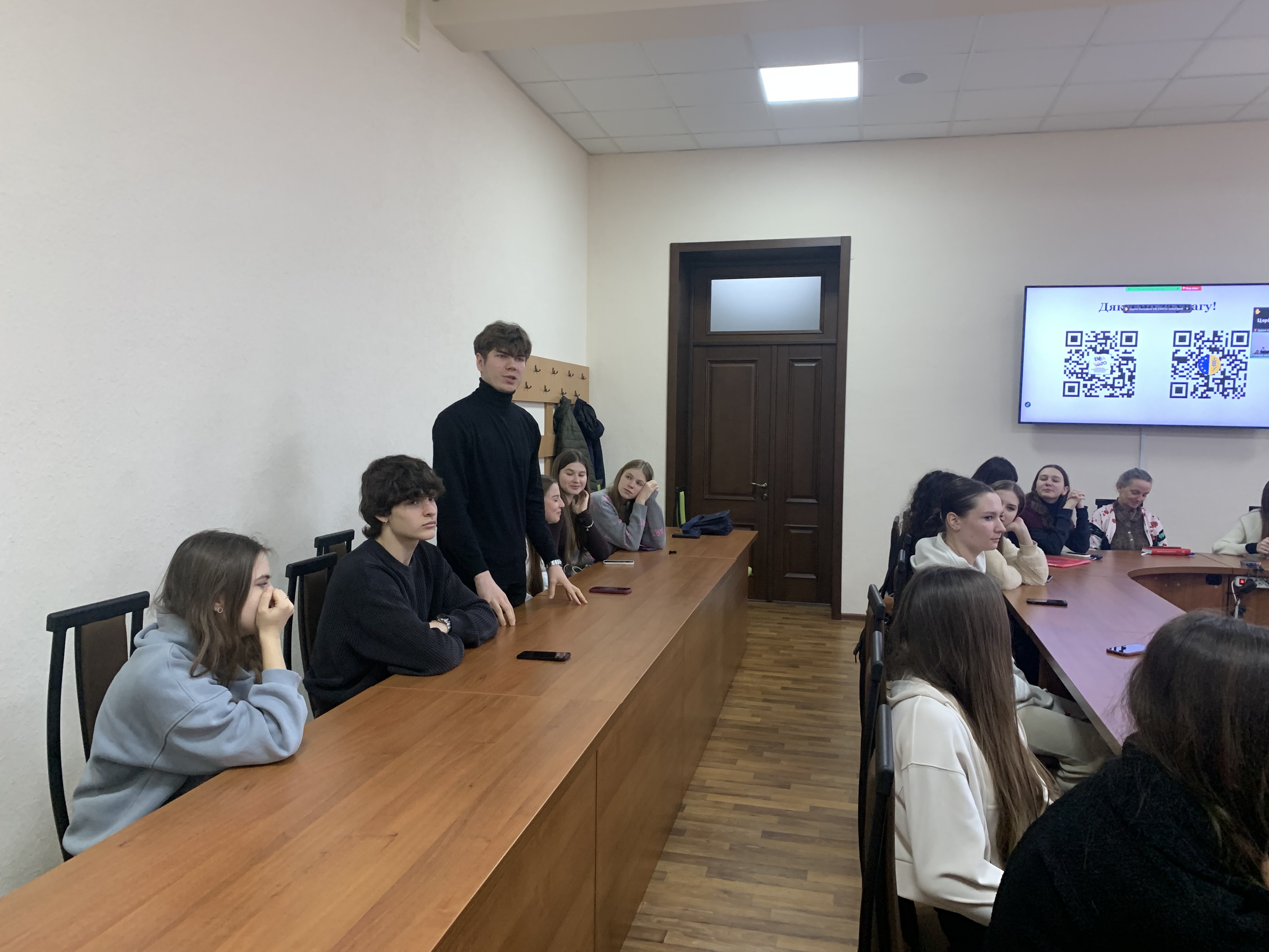 Учасники активно долучалися до обговорення: студенти ставили запитання про важливі аспекти адаптації українських агровиробників до умов Спільної аграрної політики ЄС, перспективи розвитку маршрутів українського аграрного експорту через країни ЄС, а також можливості стажування в Урядовому офісі координації європейської і євроатлантичної інтеграції України. Лектор детально коментував кожне питання, підкреслюючи практичні аспекти відповідних тем.