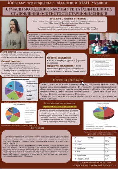 Стефанія Т. – сучасні молодіжні субкультури та їхній вплив на становлення особистості старшокласників;