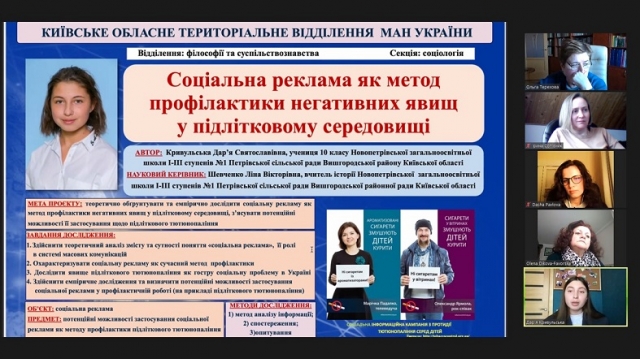 Дарія К. – соціальну рекламу як метод профілактики негативних явищ у підлітковому середовищі та ін.