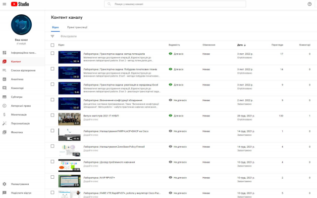 Підготовлені відеоінструкції після попереднього розгляду кафедрою опрацьовують працівники відеостудії, публікують на відеоканалі факультету, після чого навчально-методична рада факультету розглядає підготовлені матеріали та рекомендує до використання. Опубліковані на відеоканалі ресурси викладач вбудовує у ЕНК. Працівники відеостудії також здійснють облік опублікованих відео. На даний час вже розміщено 17 відеоресурсів до лабораторних занять, 28 ресурсів подано до редагування та публікації на каналі.