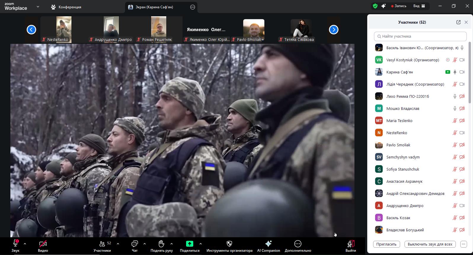 Студенти й викладачі поставили квіти до меморіального стенду, схиливши голови в знак поваги та вдячності. Особливо зворушливою стала телефонна розмова із мамою загиблого Героя Вадима Винниченка, з якою кафедра підтримує щирі стосунки. Її спогади про сина, його життєві цінності, силу духу й любов до України не залишають місця для байдужості. Жива розмова дала можливість студентам глибше відчути людський вимір війни - не лише як історичної події, а як особистої трагедії й водночас приклад мужності.