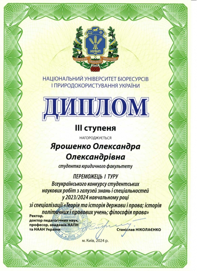 З деякими аспектами їхніх виступів можна ознайомитися у збірнику наукових праць за результатами XVII Всеукраїнської науково-практичної онлайн-конференції "Проблеми юридичної науки очима молодих науковців", що відбулася 09 травня 2024 року на юридичному факультеті Національного університету біоресурсів та природокористування України (доповіді). Принагідно зазначу, що наш «Клуб юних теоретиків» виступив одним із співорганізаторів цього студентського наукового заходу.