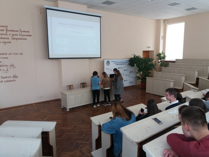 Студентів було розділено на пари, кожна з яких отримала своє ігрове поле для даної гри було заготовлено презентацію на дев’яносто питань з варіантами відповідей.