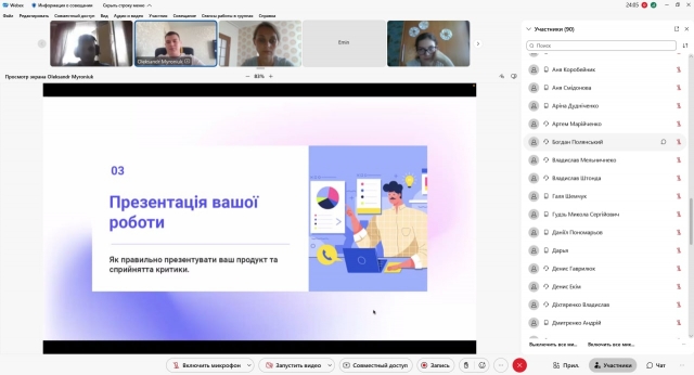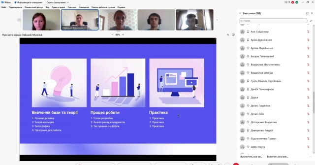 Під час навчальної практики з дисципліни Інформаційні технології у ролі спікера був запрошений Олександр Миронюк, випускник спеціальності “Комп’ютерні науки”, який зараз працює на посаді ux/ui designer в європейській компанії. Зі студентами факультету спеціальностей «Комп’ютерні науки», «Інженерія програмного забезпечення», «Комп’ютерна інженерія», «Кібербезпека» та «Інформаційні системи і технології» Олександр поділився практичним досвідом роботи в сфері вебдизайну, адже розпочав свою діяльність ще зі студентських років.