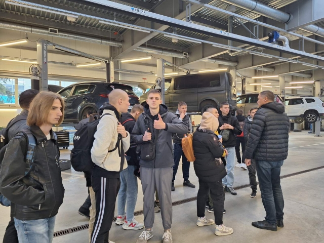 Під час практичного навчання студенти ознайомилися з відділом сервісного обслуговування, який відрізняється високим рівнем оснащення та якісним рівнем робіт. Віктор Солтан зауважив, що послугами автоцентру користуються клієнти з усієї України, впродовж тривалого часу. На сьогоднішній день автоцентр керується виключно європейськими стандартами якості та пропонуємо своїм клієнтам вигідні умови придбання та обслуговування автомобілів. Час очікування клієнт можете провести в комфортній кімнаті відпочинку та пригоститися кавою. Щоб відчути можливості авто на дорозі автоцентр пропонує клієнтам записатися та пройти тест-драйв.