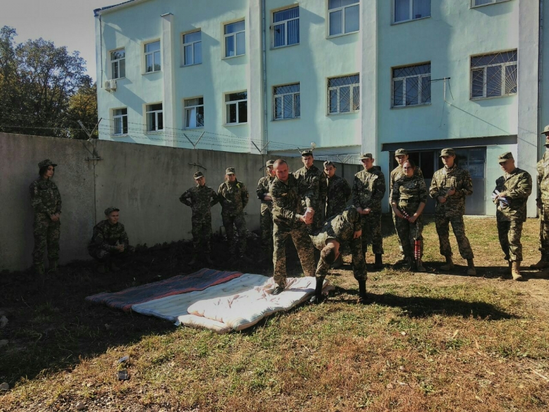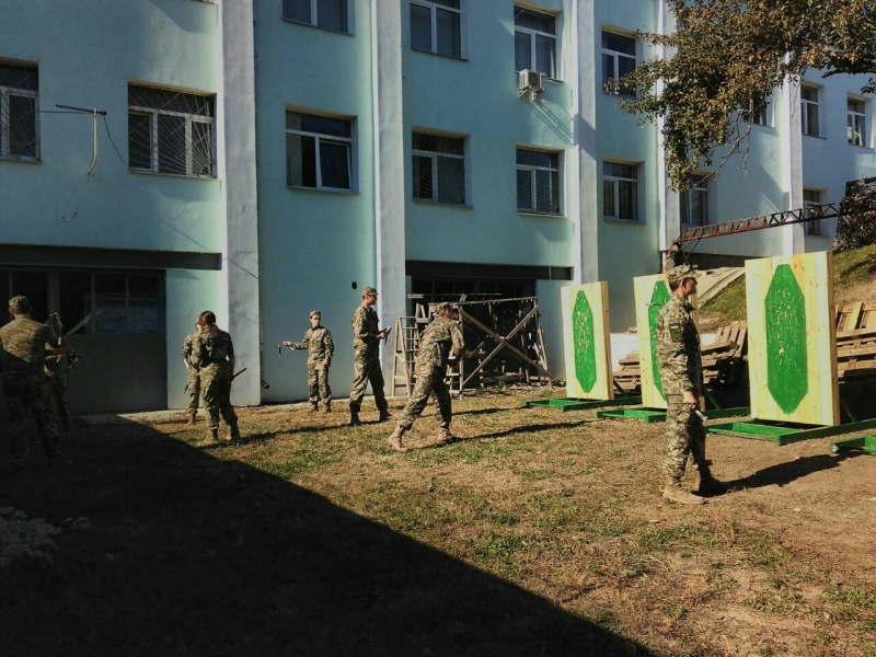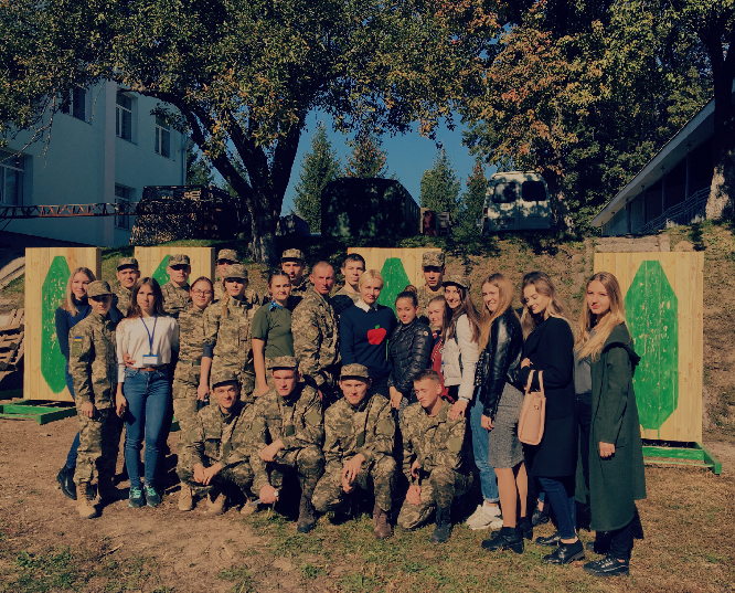 Наприклад, ми познайомилися з полковником Андрієвським Андрієм Петровичем, котрий із своїми учнями займався бойовим мистецтвом, навчабчи їх та демонстрував прийоми самозахисту. Нам було дозволено спробувати свої сили у метані ножів чи саперної лопатки. Навіть наш куратор доцент кафедри журналістики Чекалюк Вероніка Василівна спробувала метати ножі й вцілила у «десяточку» щоправда не з першого разу.