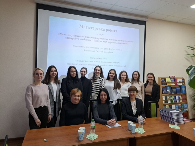 З 15 по 23 листопада 2022 року на кафедрі романо-германських мов і перекладу гуманітарно-педагогічного факультету НУБіП України проходив захист магістерських кваліфікаційних робіт на здобуття освітнього рівня магістр за спеціальністю «Філологія» ОП «Англійська мова та друга іноземна мова». Захисти магістрів денної форми відбулися в офлайн-форматі, для магістрів заочної форми – у змішаному форматі, тобто в аудиторії та в онлайн-режимі. До захисту було допущено двадцять п’ятеро магістрів заочної форми та дев’ятеро магістрів денної форми.
